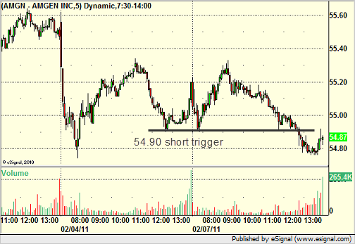 AMGN triggered short (without market support) and held in the money the whole time, but only by about ten cents before the close: