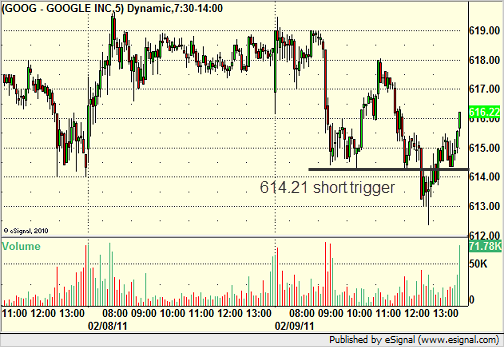 GOOG triggered short (with market support) and worked for a couple of points: