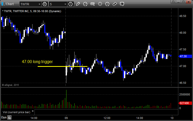 From the Messenger/Tradesight_st Twitter Feed, Rich’s TWTR triggered long (without market support due to opening 5 minutes) and didn’t work: