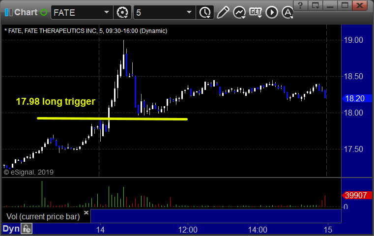 With each stock’s recap, we will include a (with market support) or (without market support) tag, designating whether the trade triggered with or without market directional support at the time. Anything in the first five minutes will be considered WITHOUT market support because market direction cannot be determined that early. ETF calls do not require market support, and are thus either winners or losers.