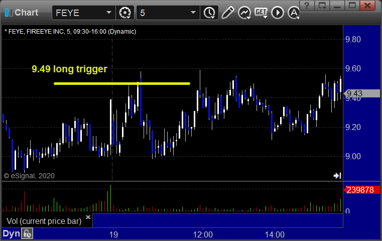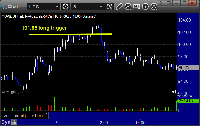 With each stock’s recap, we will include a (with market support) or (without market support) tag, designating whether the trade triggered with or without market directional support at the time. Anything in the first five minutes will be considered WITHOUT market support because market direction cannot be determined that early. ETF calls do not require market support, and are thus either winners or losers.