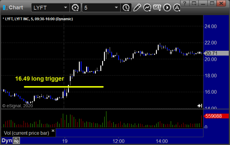 From the Messenger/Tradesight_st Twitter Feed, Rich’s LYFT triggered long (with market support) and worked: