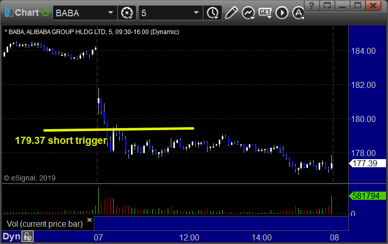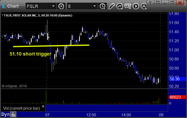 From the Messenger/Tradesight_st Twitter Feed, FSLR triggered short (with market support) and worked enough for a partial: