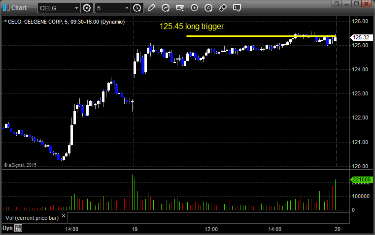 Mark’s CELG triggered long (without market support, but no one should have been trading either way at this point in the session with the market so flat) and didn’t work: