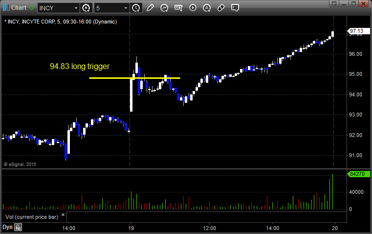 From the Messenger/Tradesight_st Twitter Feed, Mark’s INCY triggered long (with market support) and worked: