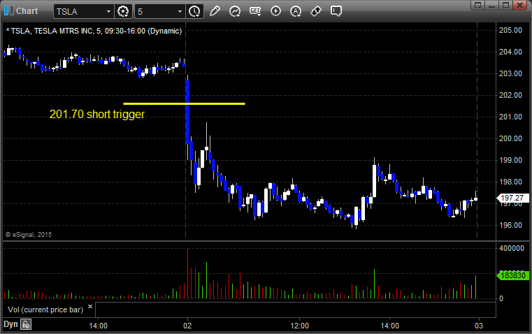 From the Messenger/Tradesight_st Twitter Feed, Rich’s TSLA triggered short (without market support due to opening 5 minutes) and worked: