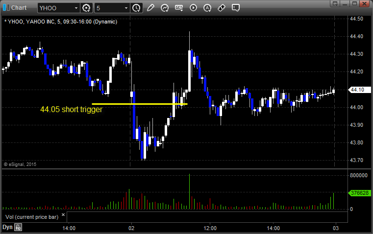 His YHOO triggered short (with market support) and worked: