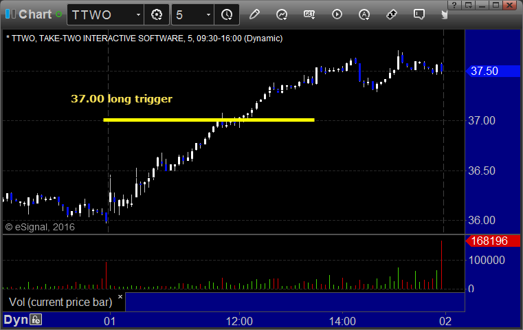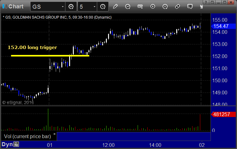 With each stock’s recap, we will include a (with market support) or (without market support) tag, designating whether the trade triggered with or without market directional support at the time. Anything in the first five minutes will be considered WITHOUT market support because market direction cannot be determined that early. ETF calls do not require market support, and are thus either winners or losers.