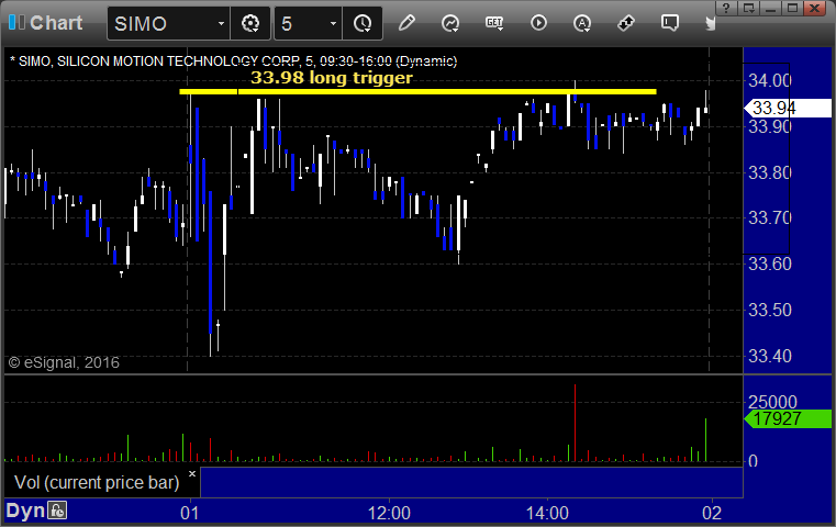 SIMO triggered long (with market support) and didn’t go enough either direction to count, closed around trigger: