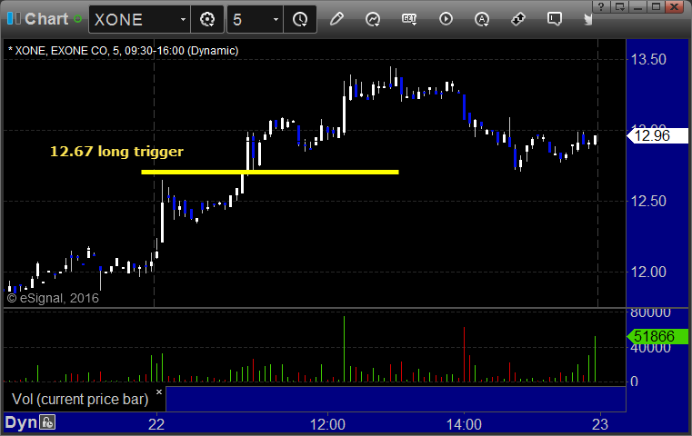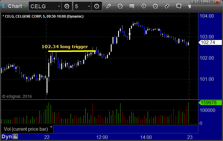 With each stock’s recap, we will include a (with market support) or (without market support) tag, designating whether the trade triggered with or without market directional support at the time. Anything in the first five minutes will be considered WITHOUT market support because market direction cannot be determined that early. ETF calls do not require market support, and are thus either winners or losers.