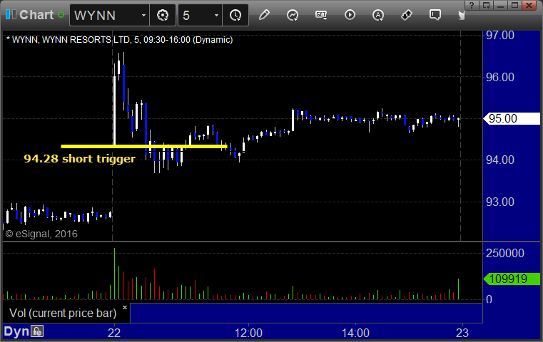Rich’s WYNN triggered short (without market support) and worked enough for a partial: