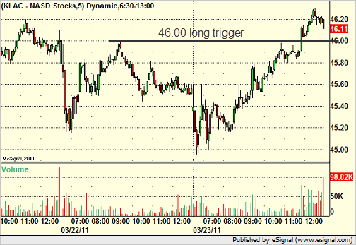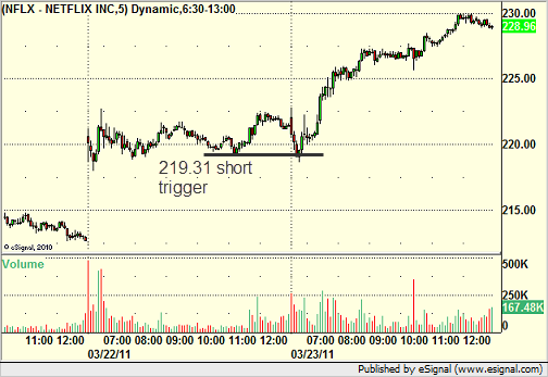 In the Messenger, NFLX triggered short (with market support) and worked enough for a partial, although it barely looks like it here on the chart because it turned and ran up so much more, but it still went almost a point from the trigger: