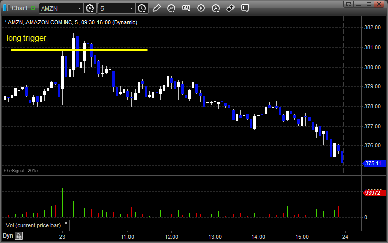 His AMZN triggered long (without market support) and almost worked enough for a partial: