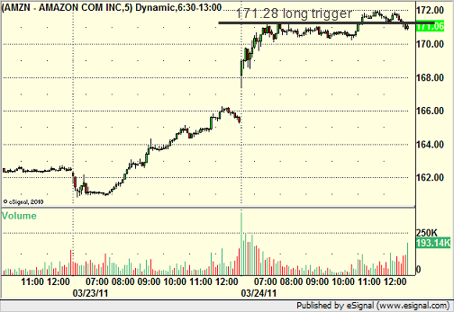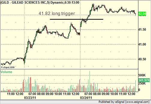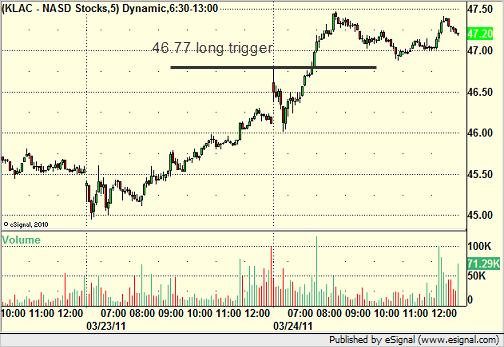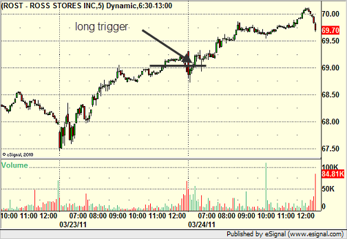 In the Messenger, Rich’s ROST triggered long (without market support) and worked (over a 5-minute bar high, which triggered in the third bar):