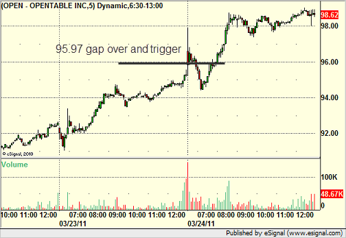 From the report, OPEN gapped over the trigger so no official play, but it did pull back and fill the gap and then triggered with market support, which is perfectly valid for traders to take under our system: