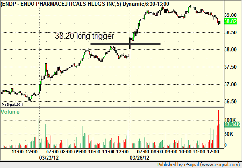 From the report, ENDP triggered long (without market support due to opening five minutes) and worked great: