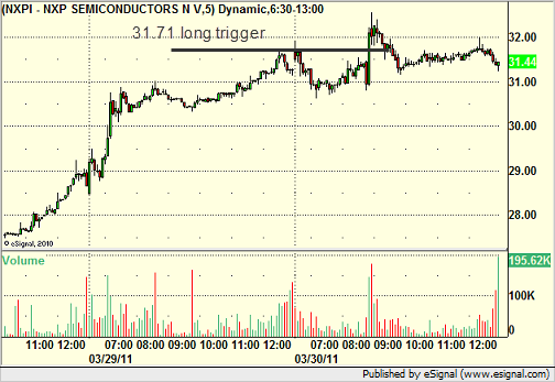 From the report, NXPI triggered long (without market support due to opening five minutes) and didn’t work. Worked later, but we’ll just count the initial: