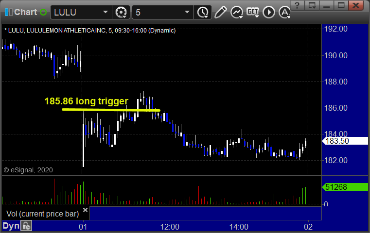 LULU triggered long (with market support) and worked enough for a partial: