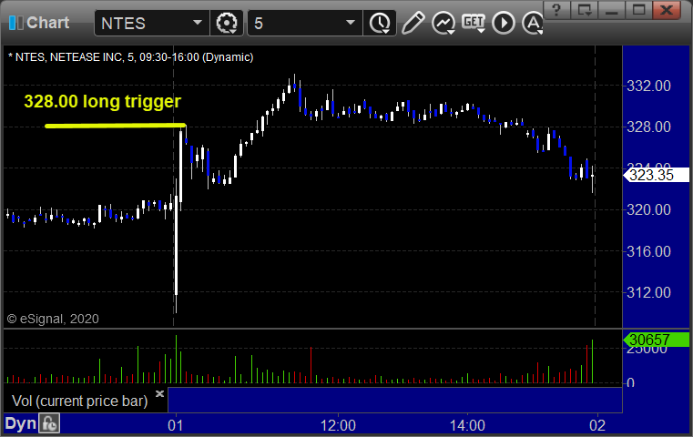 Rich’s NTES triggered long (with market support) and didn’t work initially (big move to get to the trigger fast, shouldn’t have been taken), worked later: