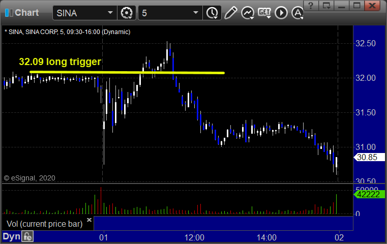 Rich’s SINA triggered long (with market support) and worked enough for a partial: