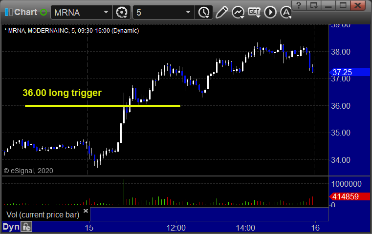 With each stock’s recap, we will include a (with market support) or (without market support) tag, designating whether the trade triggered with or without market directional support at the time. Anything in the first five minutes will be considered WITHOUT market support because market direction cannot be determined that early. ETF calls do not require market support, and are thus either winners or losers.