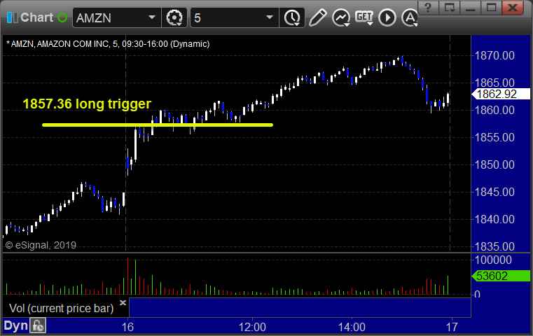 From the Messenger/Tradesight_st Twitter Feed, Rich’s AMZN triggered long (with market support) and worked great: