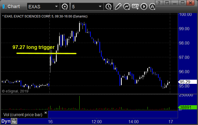 EXAS triggered long (without market support due to opening 5 minutes) and worked: