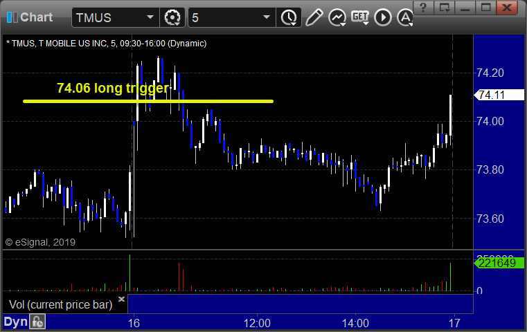 TMUS triggered long (with market support) and didn’t work, gave you plenty of time to exit for a small loss, and never went far: