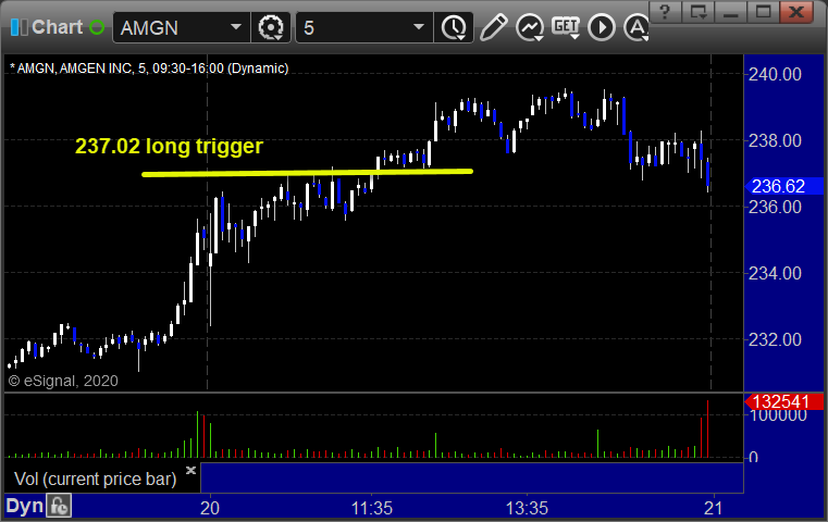 From the Messenger/Tradesight_st Twitter Feed, AMGN triggered long (with market support) and worked:
