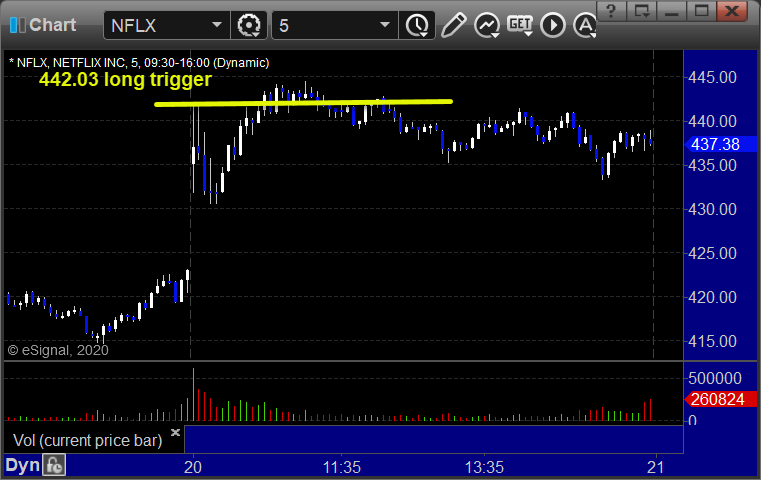 NFLX triggered long (with market support) and worked enough for a partial: