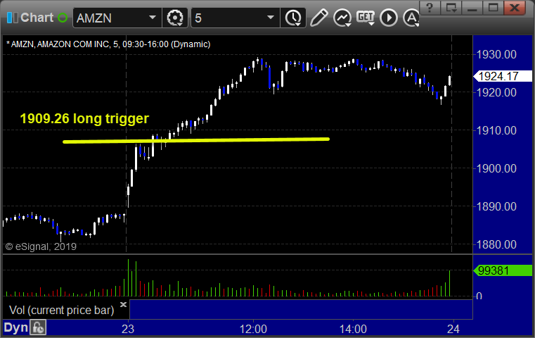 From the Messenger/Tradesight_st Twitter Feed, AMZN triggered long (with market support) and worked great: