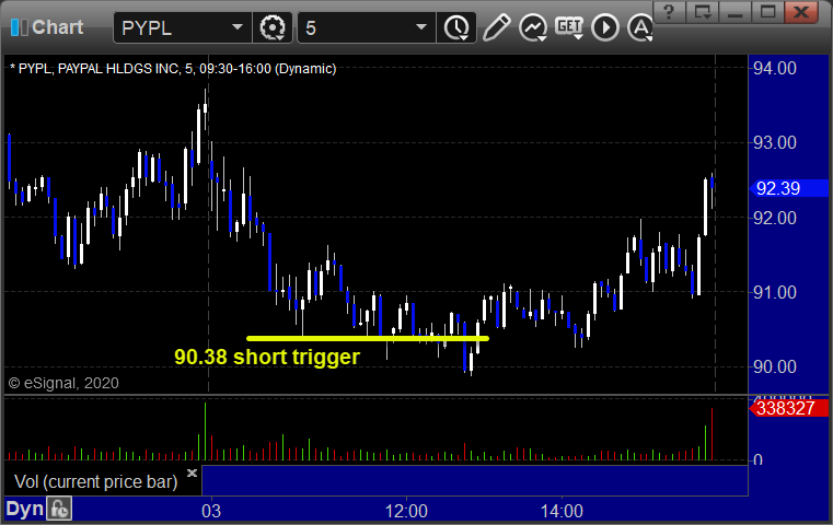 PYPL triggered short (with market support) and didn’t work: