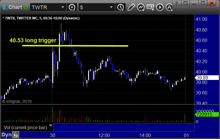 From the Messenger/Tradesight_st Twitter Feed, TWTR triggered long (with market support) and worked enough for a partial: