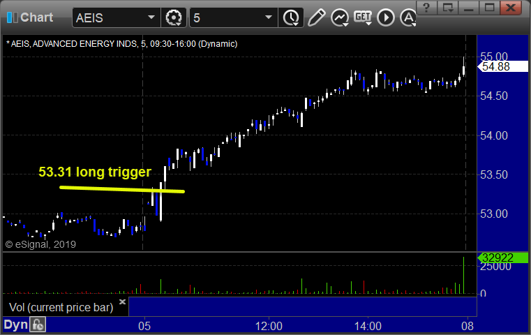 With each stock’s recap, we will include a (with market support) or (without market support) tag, designating whether the trade triggered with or without market directional support at the time. Anything in the first five minutes will be considered WITHOUT market support because market direction cannot be determined that early. ETF calls do not require market support, and are thus either winners or losers.