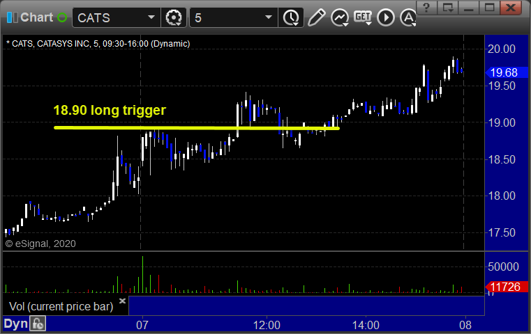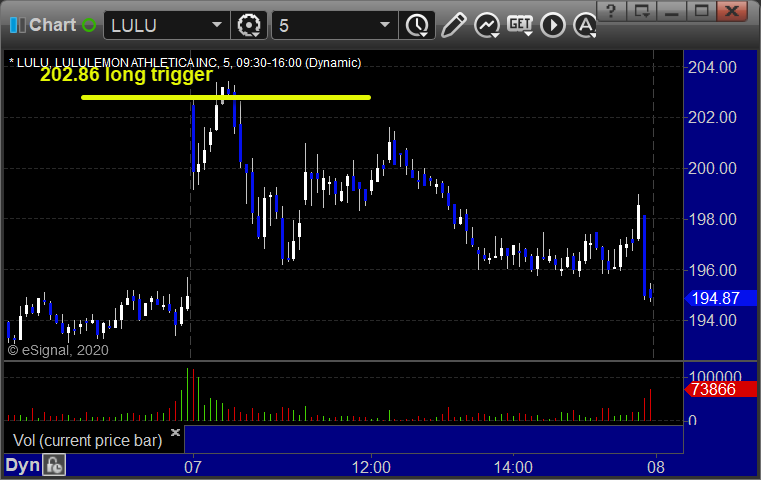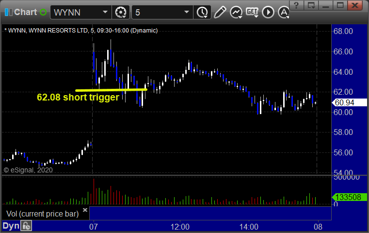 With each stock’s recap, we will include a (with market support) or (without market support) tag, designating whether the trade triggered with or without market directional support at the time. Anything in the first five minutes will be considered WITHOUT market support because market direction cannot be determined that early. ETF calls do not require market support, and are thus either winners or losers.