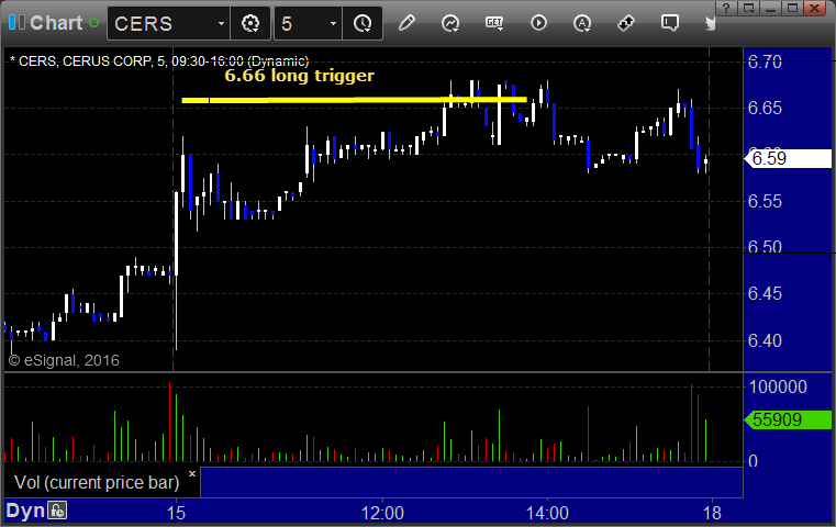 From the report, CERS triggered, but of course exactly on the wrong day for it, so we will watch Monday as it didn’t move Friday with the market at all, stayed within a couple of cents: