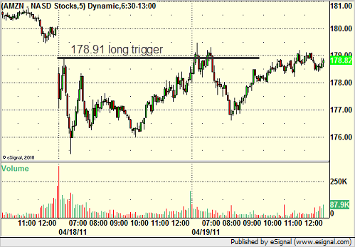 AMZN triggered long (with market support) and worked enough for an easy partial: