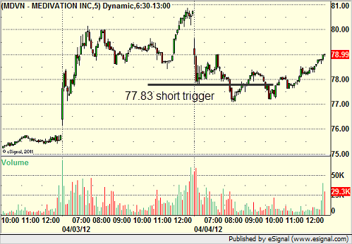 From the report, RIMM and GRPN both gapped under their triggers, no plays, but they filled their gaps and then triggered with the market later, which is valid.