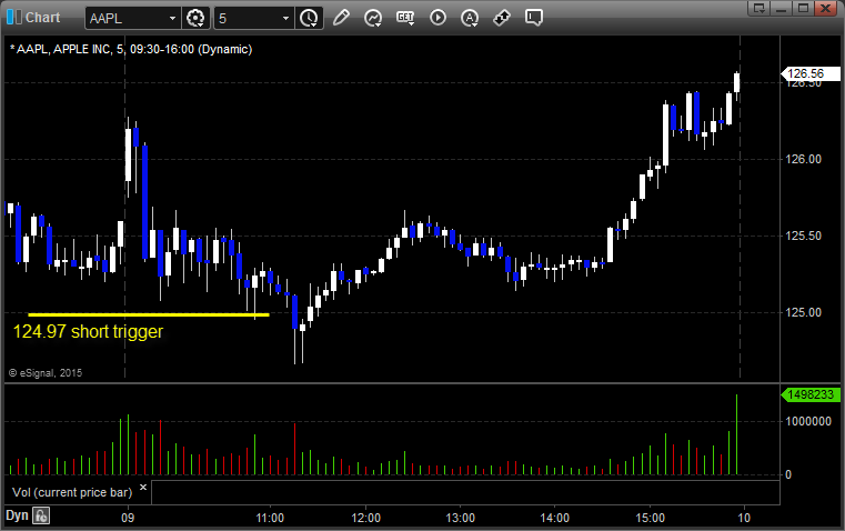 His AAPL triggered short (with market support) and ultimately didn’t work, but it took over an hour between the stop and first target areas:
