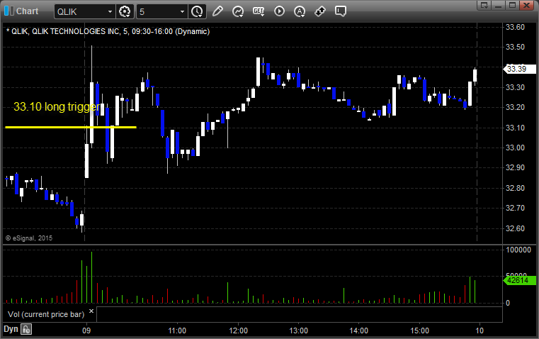 QLIK triggered long (without market support due to opening 5 minutes) and worked enough for a partial: