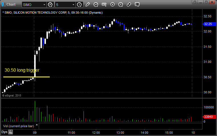 SIMO triggered long (without market support due to opening 5 minutes) and worked: