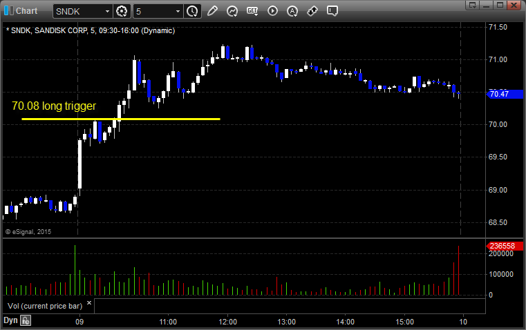 His SNDK triggered long (with market support) and worked: