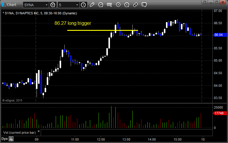 From the report, SYNA triggered long (with market support) and worked only enough for a partial: