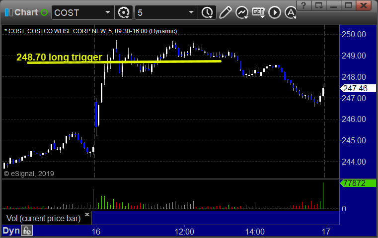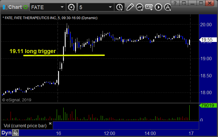 With each stock’s recap, we will include a (with market support) or (without market support) tag, designating whether the trade triggered with or without market directional support at the time. Anything in the first five minutes will be considered WITHOUT market support because market direction cannot be determined that early. ETF calls do not require market support, and are thus either winners or losers.