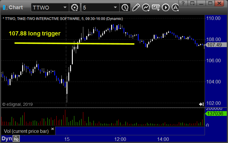 From the Messenger/Tradesight_st Twitter Feed, TTWO triggered long (with market support) and worked: