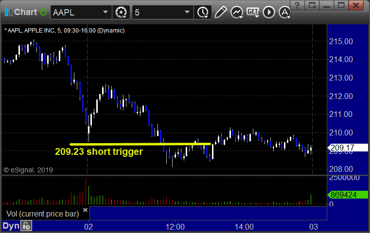 From the Messenger/Tradesight_st Twitter Feed, AAPL triggered short (with market support) and worked: