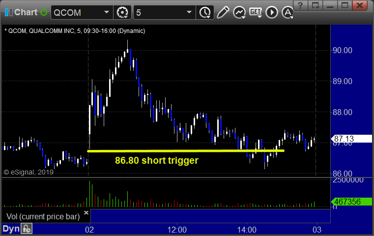 Rich’s QCOM triggered short (with market support) and worked enough for a partial: