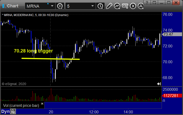 From the Messenger/Tradesight_st Twitter Feed, Rich’s MRNA triggered long (with market support) and worked enough for a partial: