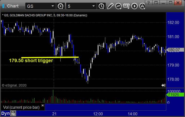 With each stock’s recap, we will include a (with market support) or (without market support) tag, designating whether the trade triggered with or without market directional support at the time. Anything in the first five minutes will be considered WITHOUT market support because market direction cannot be determined that early. ETF calls do not require market support, and are thus either winners or losers.