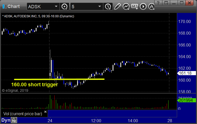 From the Messenger/Tradesight_st Twitter Feed, Rich’s ADSK triggered short (with market support) and worked enough for a partial: